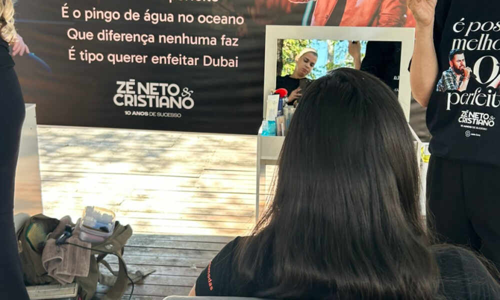 Fazendo jus a letra da nova música “Dubai”, a dupla realizou dezenas de maquiagens profissionais gratuitas nesta manhã na região da Lapa “Maquia seu rosto, pinta...