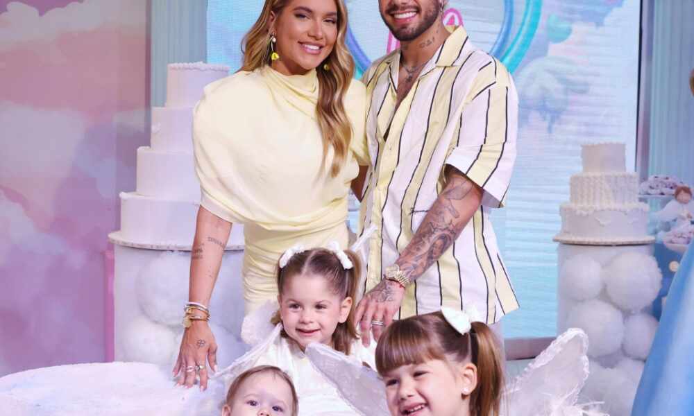Zé Felipe e Virgínia chegaram acompanhados dos três filhos. A festa, que acontece em Goiânia, conta com mais de 60.000 balões. Foram 10 dias de...