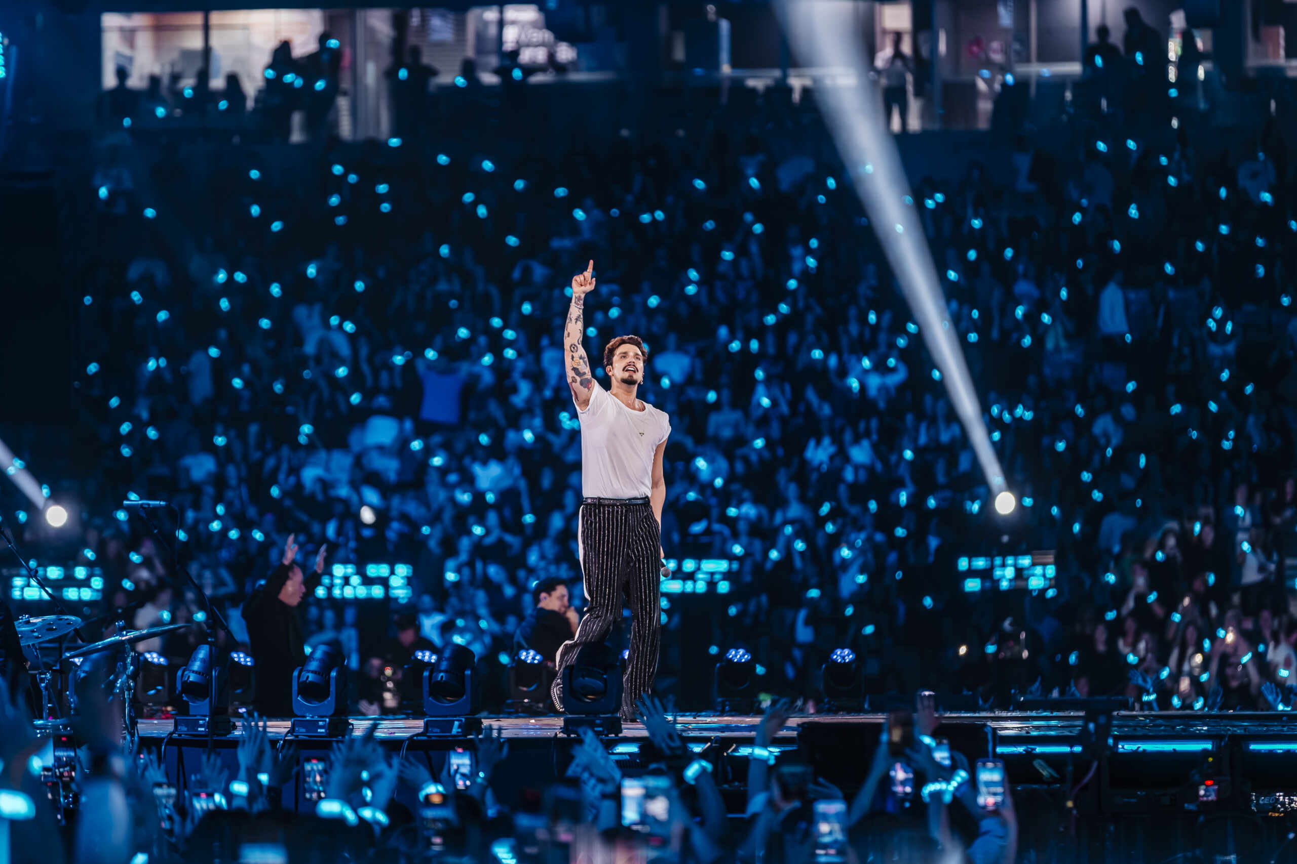 No palco, Luan conduz um show de grande porte, com cenário imersivo, passarela em “S” e painéis de LED, além de um repertório que percorre sucessos que marcaram gerações, como “Meteoro da Paixão”, “Você Não Sabe o Que É Amor”, “Escreve Aí” e “Te Vivo”.