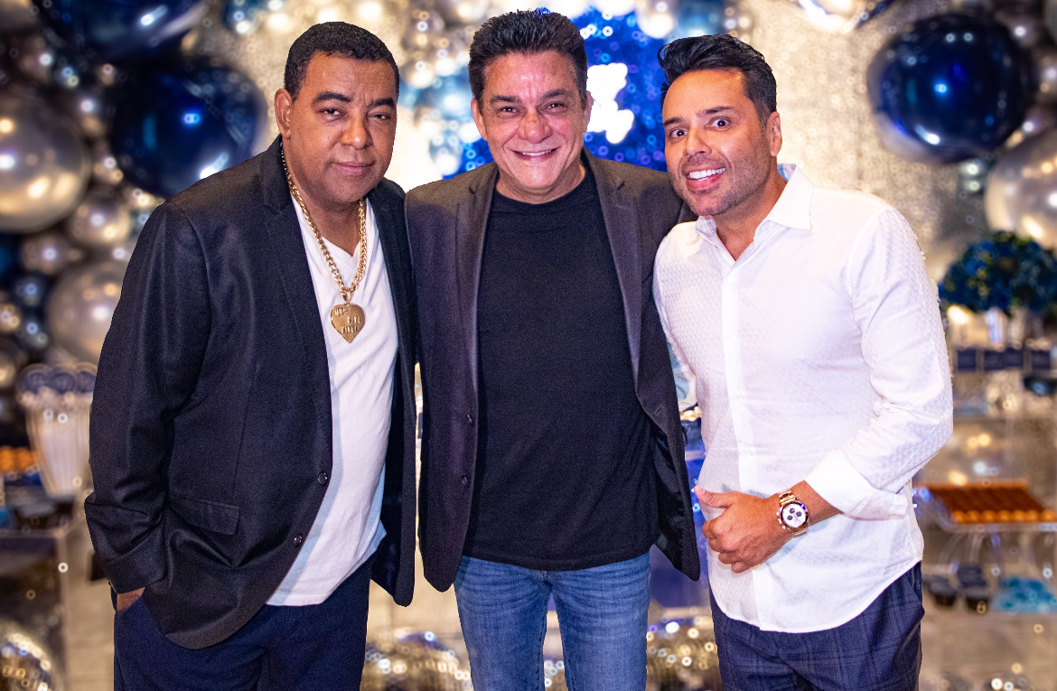 Luiz Carlos, do Raça Negra, e o empresário Allan Caramaschi comemoram aniversário com show de Martinho da Vila